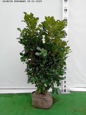 Zimozielona laurowiśnia wschodnia o wzniesionych pędach. Wzrost do 1.5 m wysokości. Posiada ciemnozielone. błyszczące. duże. szerokojajowate liście. Ozdobna w drobne. pachnące. białe kwiaty. zebrane w wyprostowane grona. a następnie małe. kuliste. czarne