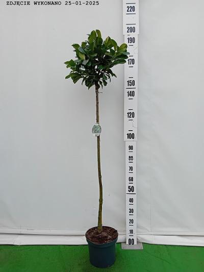 Zimozielona laurowiśnia wschodnia o wzniesionych pędach. Wzrost do 1.5 m wysokości. Posiada ciemnozielone. błyszczące. duże. szerokojajowate liście. Ozdobna w drobne. pachnące. białe kwiaty. zebrane w wyprostowane grona. a następnie małe. kuliste. czarne