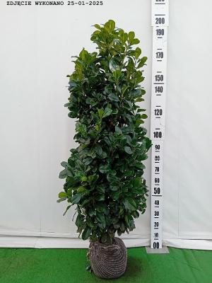 Zimozielona laurowiśnia wschodnia o wzniesionych pędach. Wzrost do 1.5 m wysokości. Posiada ciemnozielone. błyszczące. duże. szerokojajowate liście. Ozdobna w drobne. pachnące. białe kwiaty. zebrane w wyprostowane grona. a następnie małe. kuliste. czarne