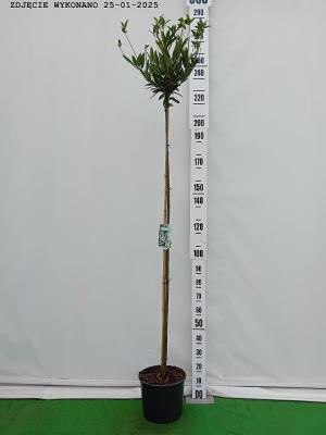 Zimozielona laurowiśnia wschodnia o wzniesionych ukośnie ku górze pędach. Wzrost do 1 m wysokości. Posiada ciemnozielone. błyszczące. duże. szerokojajowate liście. Ozdobna w drobne. pachnące. białe kwiaty. zebrane w sterczące wiechy. Polecana do ogrodów i