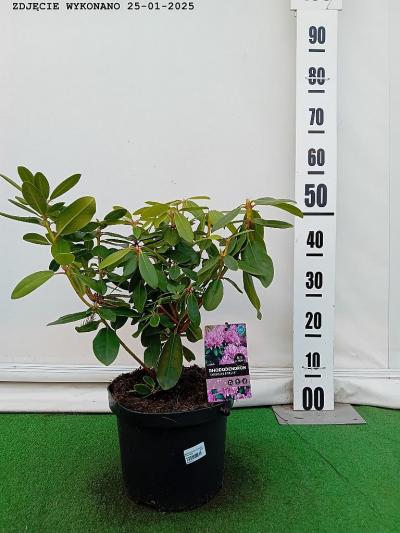 "Zimozielony różanecznik z rodziny wrzosowatych o zwartym pokroju przez cały okres wzrostu. charakteryzujący się ciemnozielonymi. skórzastymi liśćmi. Ozdobą różaneczników są przede wszystkim kwiaty. zebrane w obfite. wielobarwne kwiatostany na szczytach p