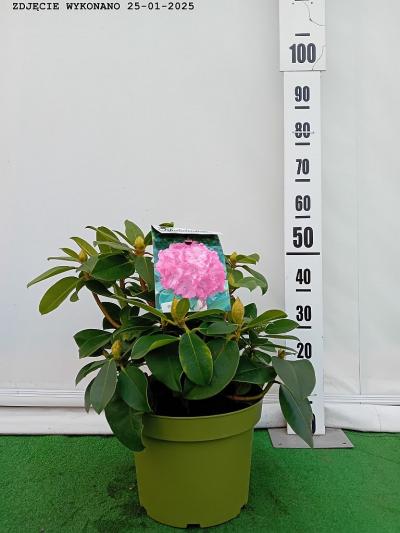 "Zimozielony różanecznik z rodziny wrzosowatych o zwartym pokroju przez cały okres wzrostu. charakteryzujący się ciemnozielonymi. skórzastymi liśćmi. Ozdobą różaneczników są przede wszystkim kwiaty. zebrane w obfite. wielobarwne kwiatostany na szczytach p