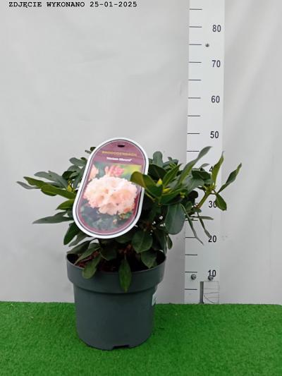 "Zimozielony różanecznik z rodziny wrzosowatych o zwartym pokroju przez cały okres wzrostu. charakteryzujący się ciemnozielonymi. skórzastymi liśćmi. Ozdobą różaneczników są przede wszystkim kwiaty. zebrane w obfite. wielobarwne kwiatostany na szczytach p