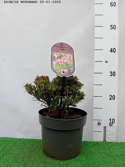 "Zimozielony różanecznik z rodziny wrzosowatych o zwartym pokroju przez cały okres wzrostu. charakteryzujący się ciemnozielonymi. skórzastymi liśćmi. Ozdobą różaneczników są przede wszystkim kwiaty. zebrane w obfite. wielobarwne kwiatostany na szczytach p