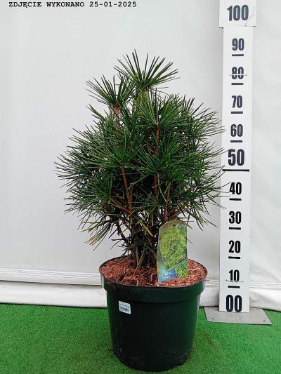 Bardzo wolnorosnąca sośnica japońska o stożkowatym pokroju. Posiada zielone. błyszczące dwupostaciowe igły – małe. łuskowate pokrywające pędy i duże zebrane na końcach pędów tworząc parasolowate okółki. Polecana do uprawy pojemnikowej i zimowania w pomies