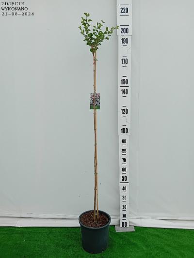 krzew do 1.5 m. ozdobny z malych blyszczacych lisci i fioletowych kwiatów