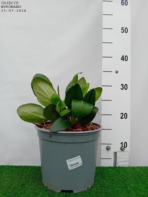 skórzaste. gładkie. zielone liście kwiaty jasnoróżowe z ciemniejszym śrdokiem odmiana obficie kwitnąca