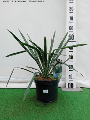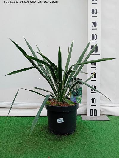 Zimozielona juka karolińska o sztywnych. mieczowatych liściach. zebranych w gęste kępy. dorastająca do 0.7 m wysokości. Ozdobna w osadzone na długich pędach kwiatostany. składające się z bardzo licznych. kremowych. dzwonkowatych. zwisających kwiatów. Pole