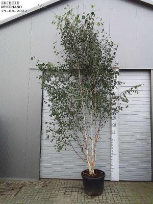 Brzoza z ażurową luźną koroną. Ozdobna kora śnieżnobiała. na młodych pędach oliwkowobrązowa. Liście zielone sercowate. dość duże. złotożółte jesienią. Dorasta do 10 m wysokości i 7 m szerokości. Ładnie komponuje się z roślinami iglastymi.