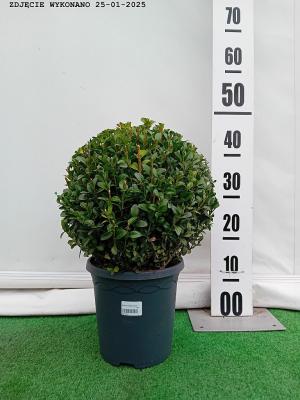 Zimozielony bukszpan wolnorosnący i gęsty. Liście ciemnozielone. owalne. skórzaste i lśniące. Kwiaty niepozorne lecz miododajne. Wzrost do 4 m. Podstawowa roślina do formowania.