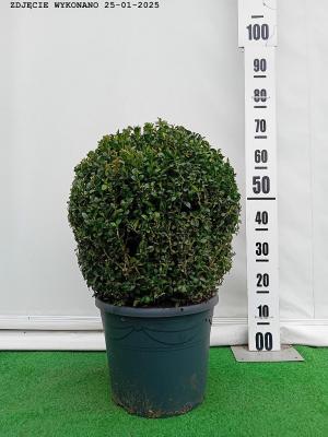 Zimozielony bukszpan wolnorosnący i gęsty. Liście ciemnozielone. owalne. skórzaste i lśniące. Kwiaty niepozorne lecz miododajne. Wzrost do 4 m. Podstawowa roślina do formowania.
